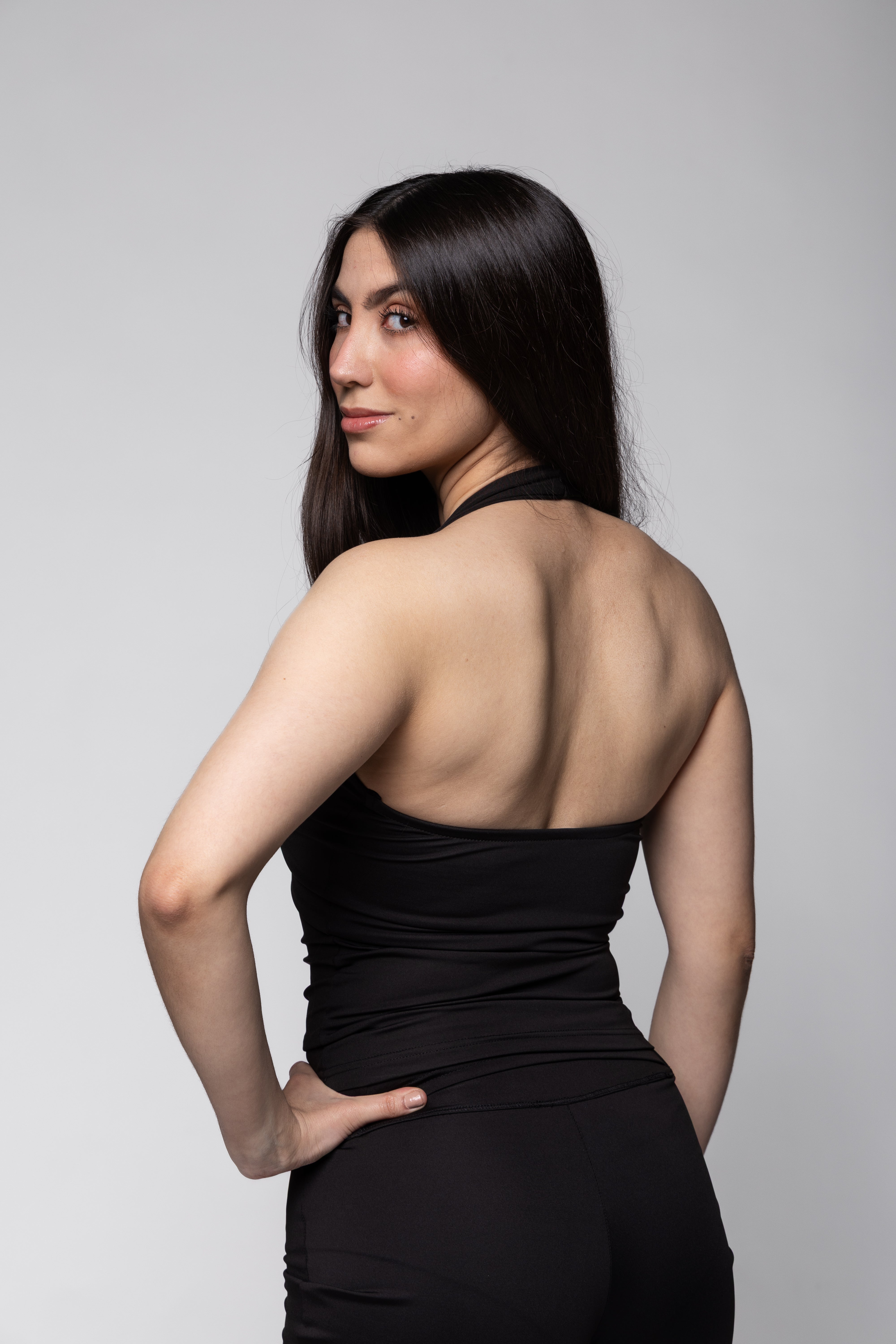 Top halter con escote redondo. Espalda descubierta.