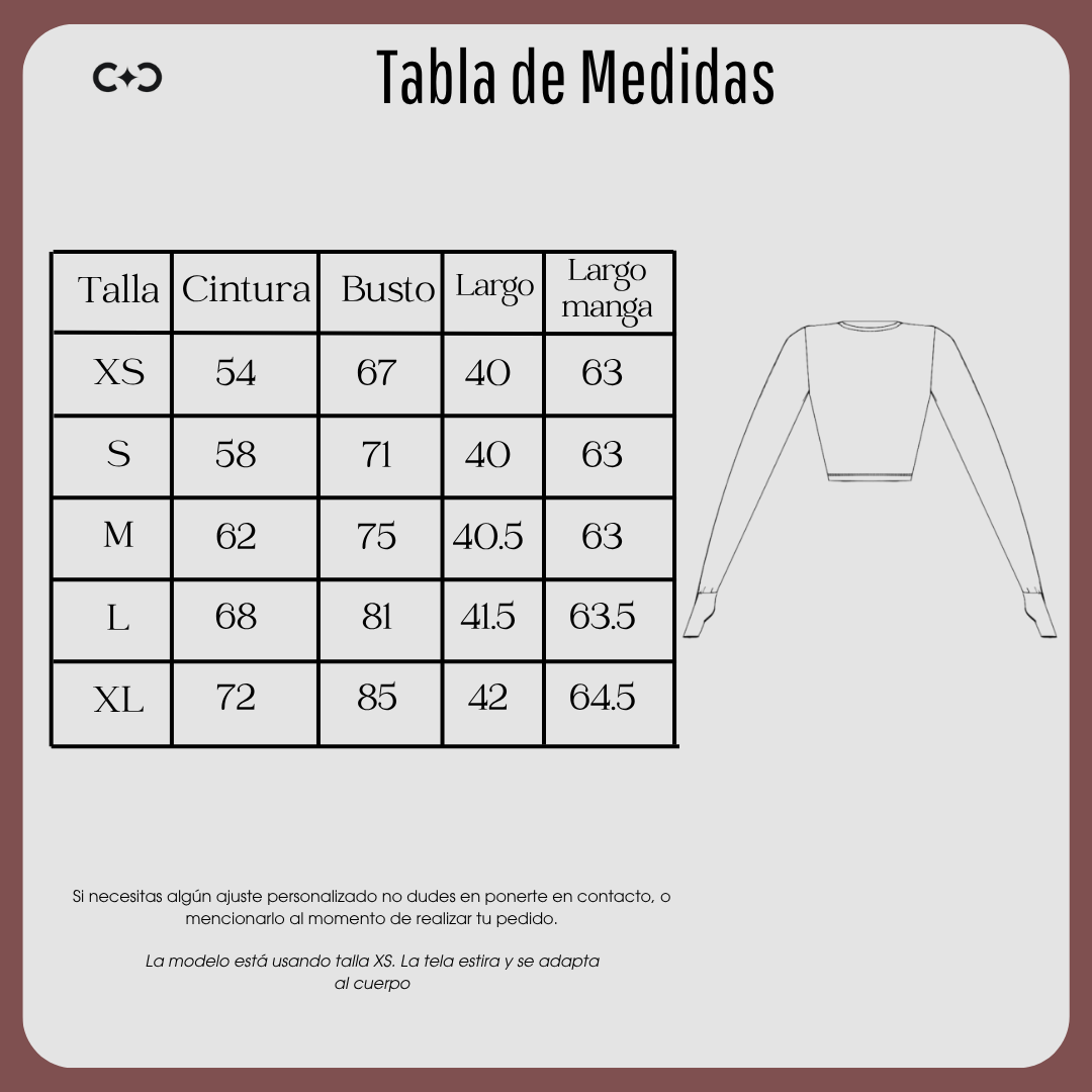 Top deportivo manga larga. Cuello redondo. Detalle de abertura en puño.