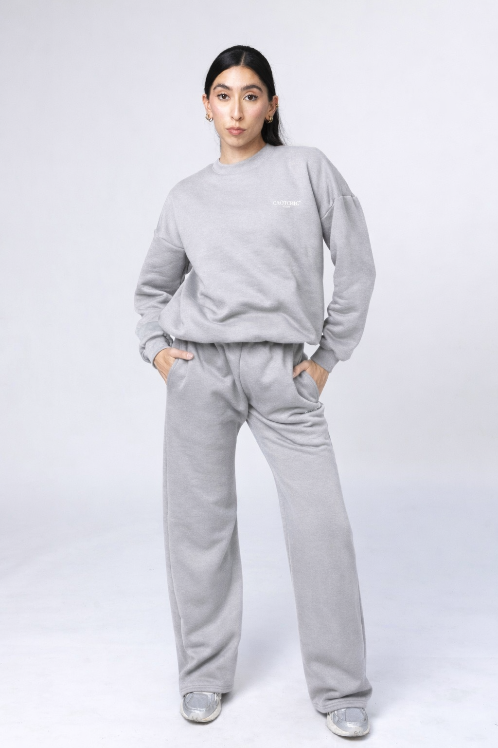 Pants deportivo de pernera ancha. Cintura ajustable con jareta oculta. Detalle en plata debajo de bolsillo izquierdo.