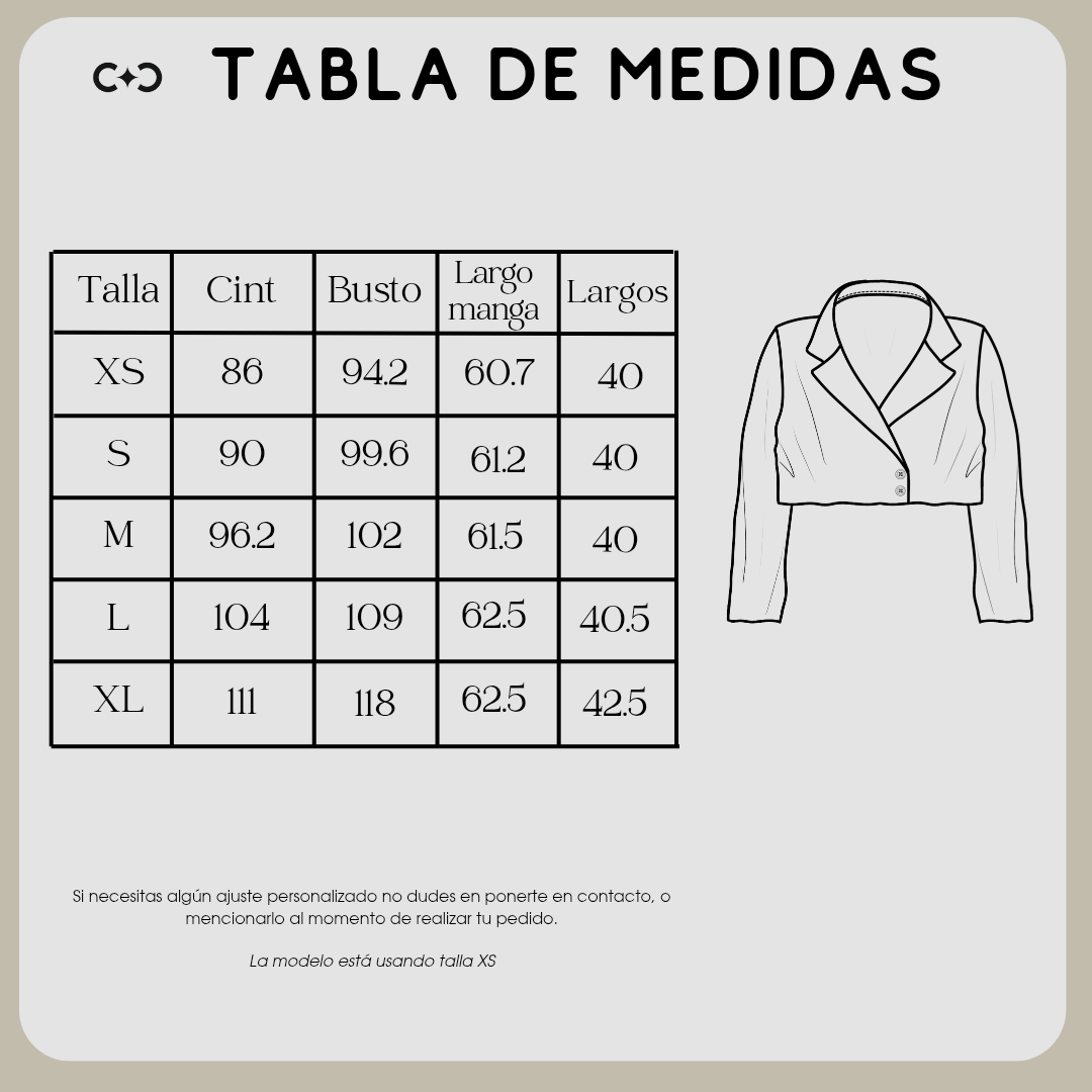 Compuesto por blazer a cintura de manga larga con cierre frontal cruzado con botones.