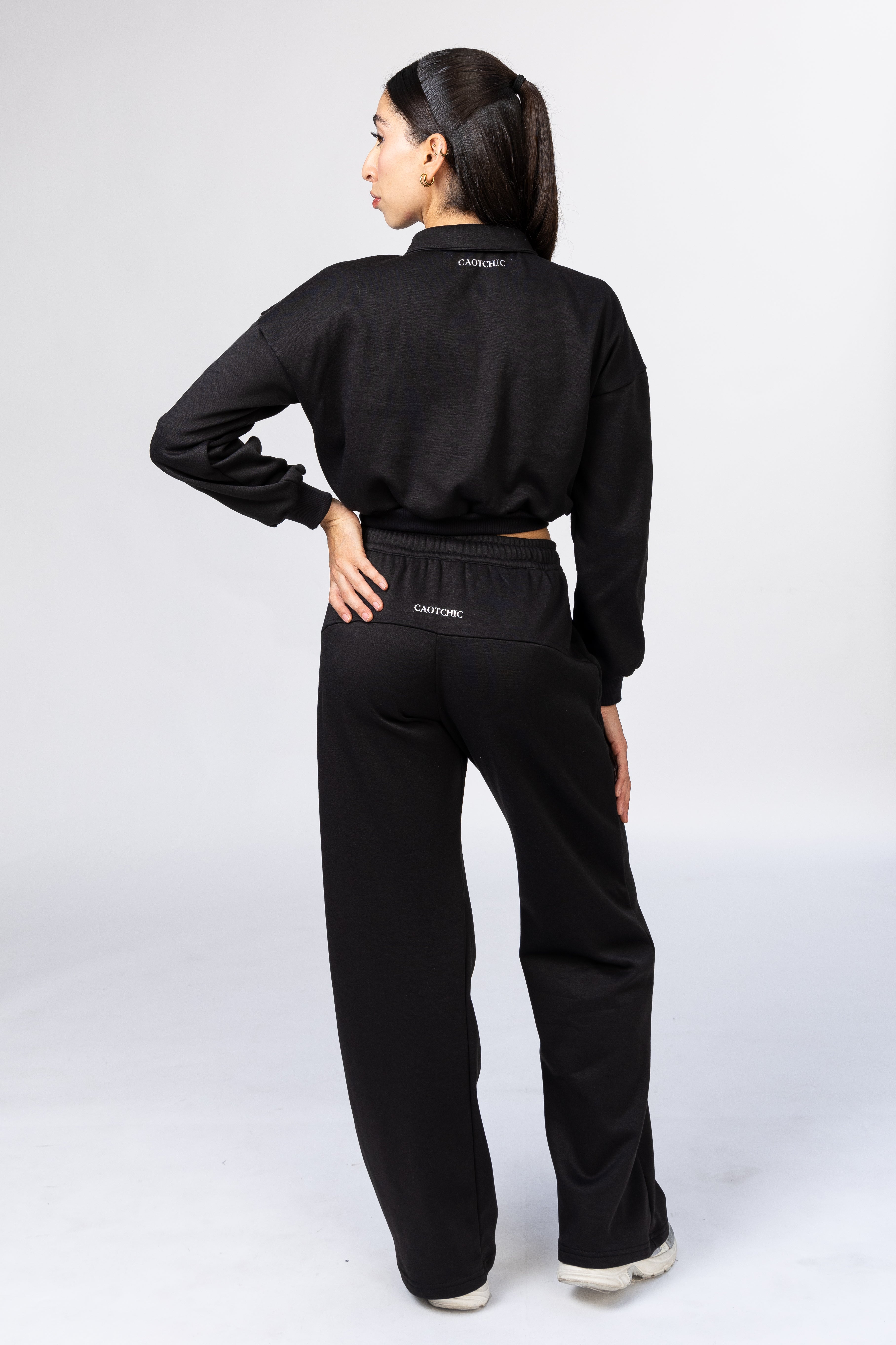 Pantalón confeccionado en felpa, con corte wide leg. Pretina ancha. Detalle de corte trasero. Bolsillos laterales. Jareta ajustable con elástico.